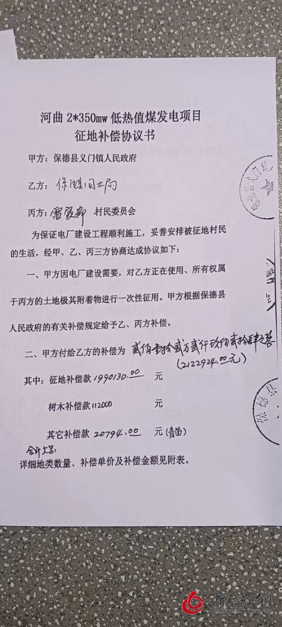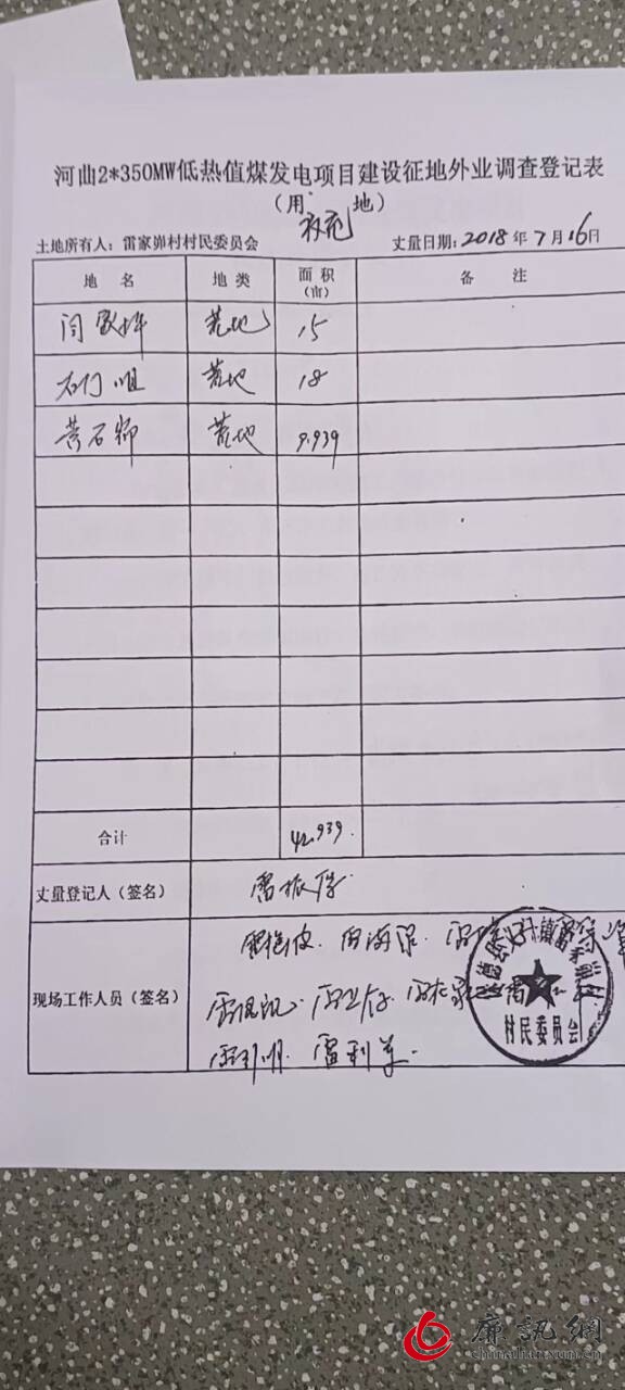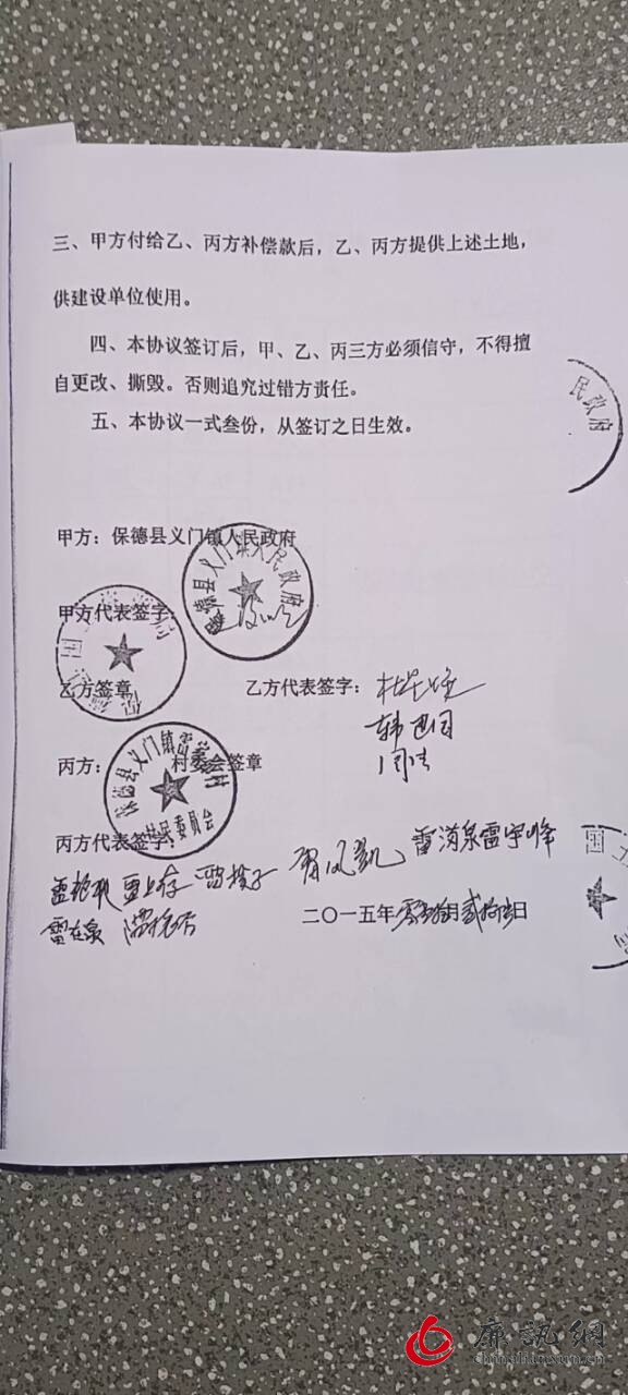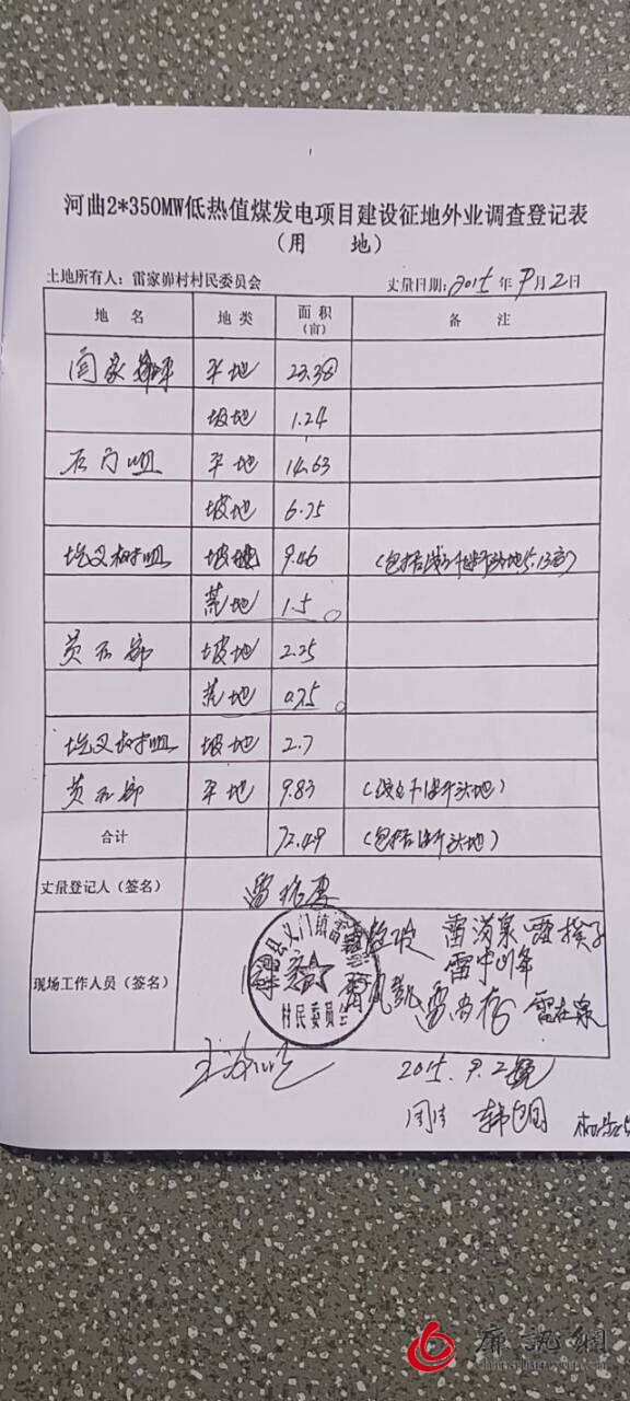五、雷尚存骗取山煤集团土地补偿款2122924元,实际征用雷家峁村,土地40,939亩,雷尚存用其他手段。合伙他人,弄虚作假,胡编乱造, 雷家峁村沟北面保德河曲地界处,过去地界划分 ,我村沟北面,所有的土地也没有100多亩,山煤集团发热电厂,怎么能征用了保德雷家峁100多亩土地,这里面很明显有假,保德河曲国土资源局可以明察,地界土地证明,现在我村欠山煤发热电厂几十亩土地,让雷尚存给还,希望有关部门明察暗访。