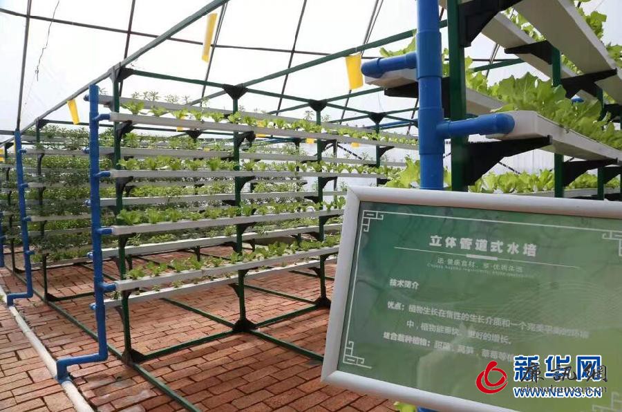 图为立体管道式水培技术种植蔬菜