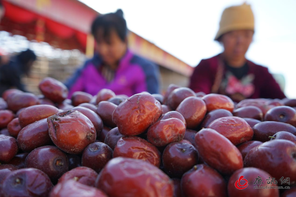 位于黄河岸边的三交镇,有一条远近闻名的红枣街,这里聚集了300多红枣经营户,每年吸引了全国各地的商人来到这里进行红枣交易。三交镇镇长白二忠说,这里的鲜枣和加工枣的年交易量达8000多万公斤,年均交易额上亿元,成为辐射周边的大型红枣集散地。
