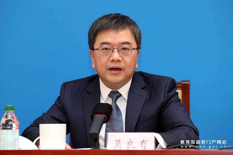 国家卫生健康委疾控局副局长吴良有介绍国家卫生健康委推进综合防控儿童青少年近视工作情况。(中国教育报记者 张劲松/摄)