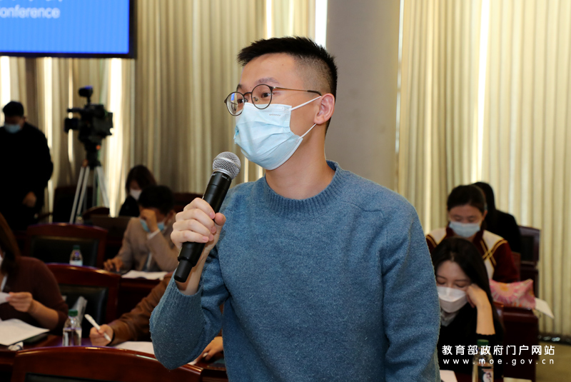 澎湃新闻记者提问。(中国教育报记者 张劲松/摄)